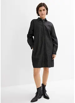 Krátké džínové šaty ve střihu do A s 3/4 nabíranými rukávy