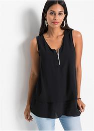 Halenkový top bez rukávů, s rozparkem a dírkovanou výšivkou
