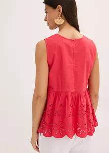 Halenkový top bez rukávů, s rozparkem a dírkovanou výšivkou
