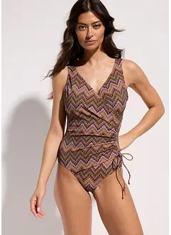 Stahovací jednodílné plavky, střední tvarující efekt, se zavinovacím vzhledem