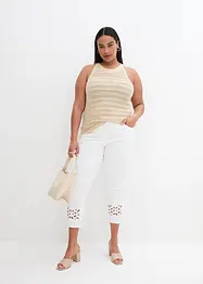 Lněné kalhoty s krajkovou vsadkou po straně, nad kotníky