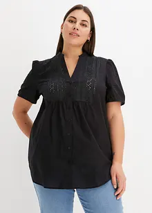 Halenka s žabičkovaným detailem, krátký rukáv, ze splývavé viskózy