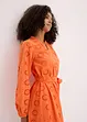 Velmi krátké šaty s dírkovanou výšivkou po celé ploše a s vázačkou
