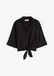 Módní lněná halenka s uzlem vpředu u dolního okraje