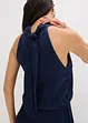 Moderní a velmi ženský overal s ramínkem za krk, ze strukturovaného saténu, boxy střih, mírně rozšířený