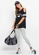 Toto ležérní triko s průstřihy spojuje moderní styl College s rafinovanými výstřihy, které zvýrazňují ramenní partie. Kontrastní proužky na lemech rukávů a výrazný potisk vpředu skvěle doplňují trendy design.Toto volně střižené tričko s polovičními rukávy a kulatým výstřihem vypadá obzvlášť stylově s úzkými kalhotami, jako jsou legíny nebo Skinny džíny. Barevné tenisky dodají finální akcent.